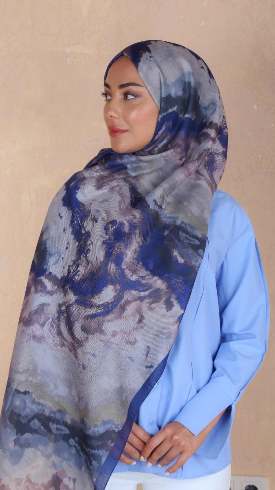 Locella Koza Pamuk Şal-Lacivert-5