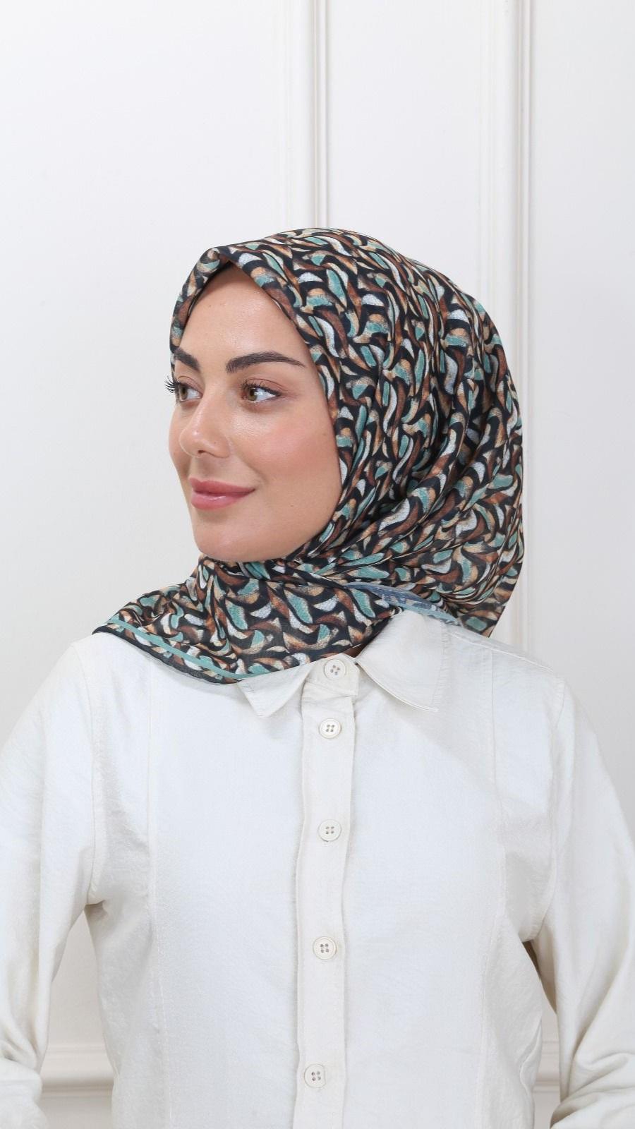 Locella Pamuk Vual Eşarp Siyah-Yeşil-9